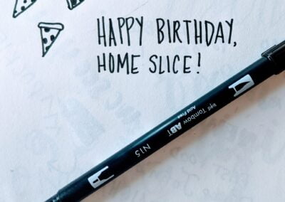 Beginning with my own unique logo that I would set up with my Etsy shop, each design I made, whether it was a greeting card or sticker, used my design muscle. I started with a sketch, scanned into Adobe Illustrator, digitally modified to perfection.