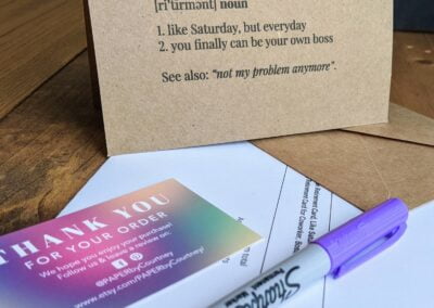 Making the art was the first step, but navigating an e-commerce site like Etsy was another beast that I conquered. I learned how to optimize my store for Etsy’s search algorithm, gained a following on Instagram, Facebook and TikTok, and dabbled in creating advertisements in each of those spaces. I managed the cost of goods sold, balanced the books, and handled all customer service requests (ensuring their happiness triumphed above all else). Which ultimately led to return customers for PAPER by Courtney!